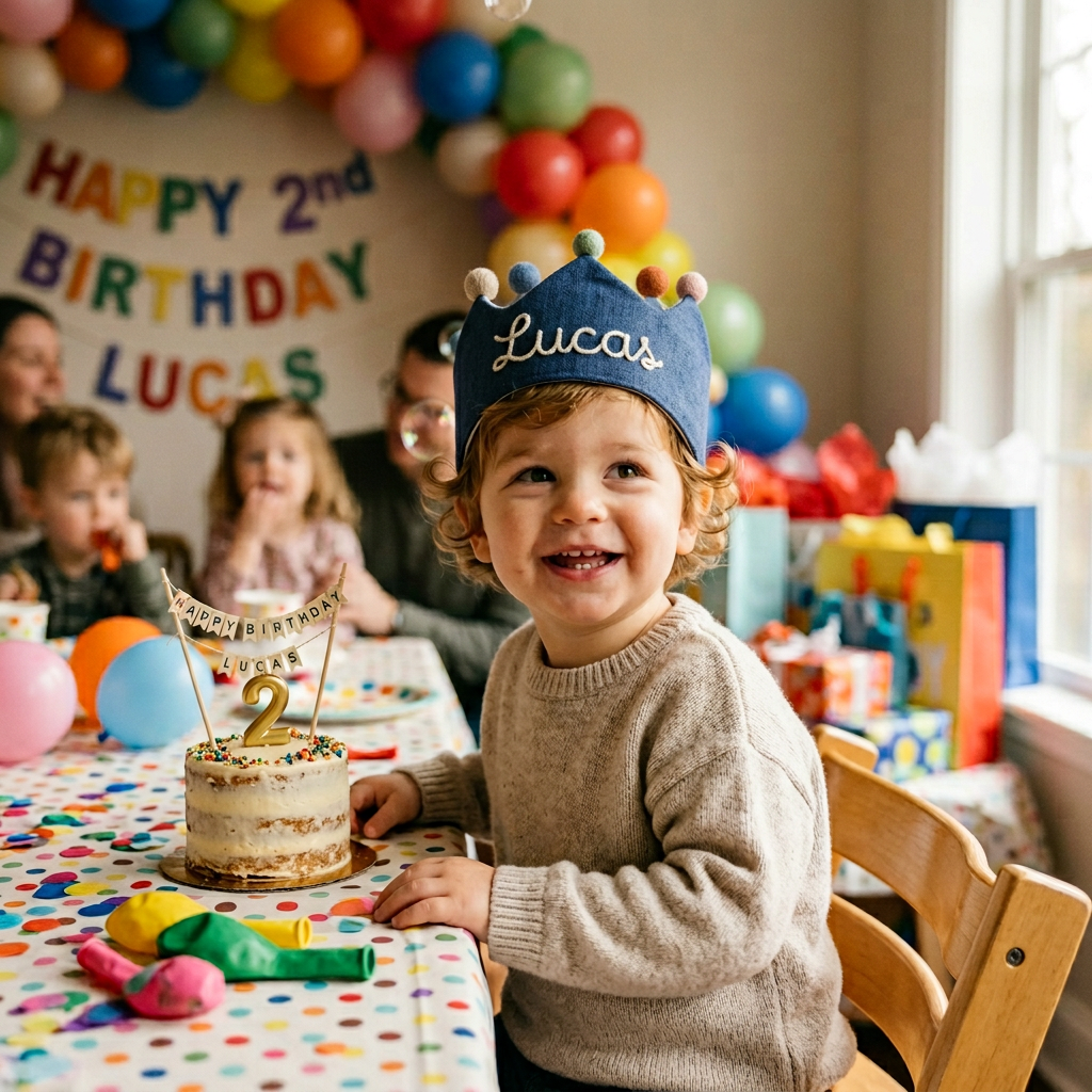 Personalized Linen Birthday Crown with Name, Handmade First Birthday Party Hat, Birthday Crown for Boy Girl, Toddler Birthday Name Hat, Custom Baby Birthday Crown Gifts