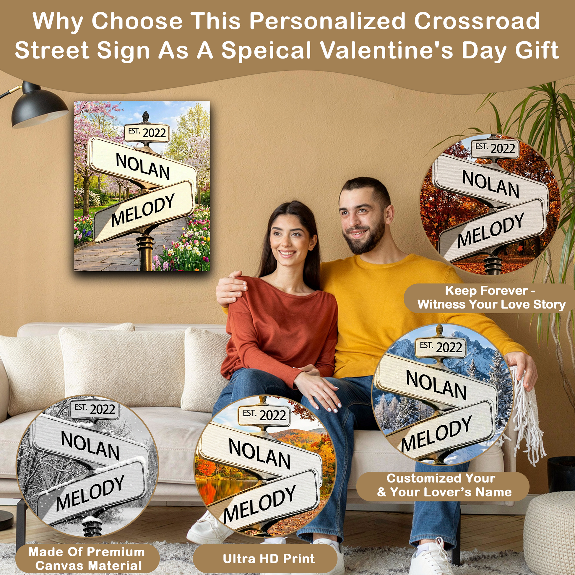Toiles imprimées personnalisées avec les noms du couple, panneaux de signalisation vintage, cadeaux pour la Saint-Valentin, Noël, fiançailles, mariage, anniversaire (pour lui, elle, mari, femme, petit ami, petite amie).